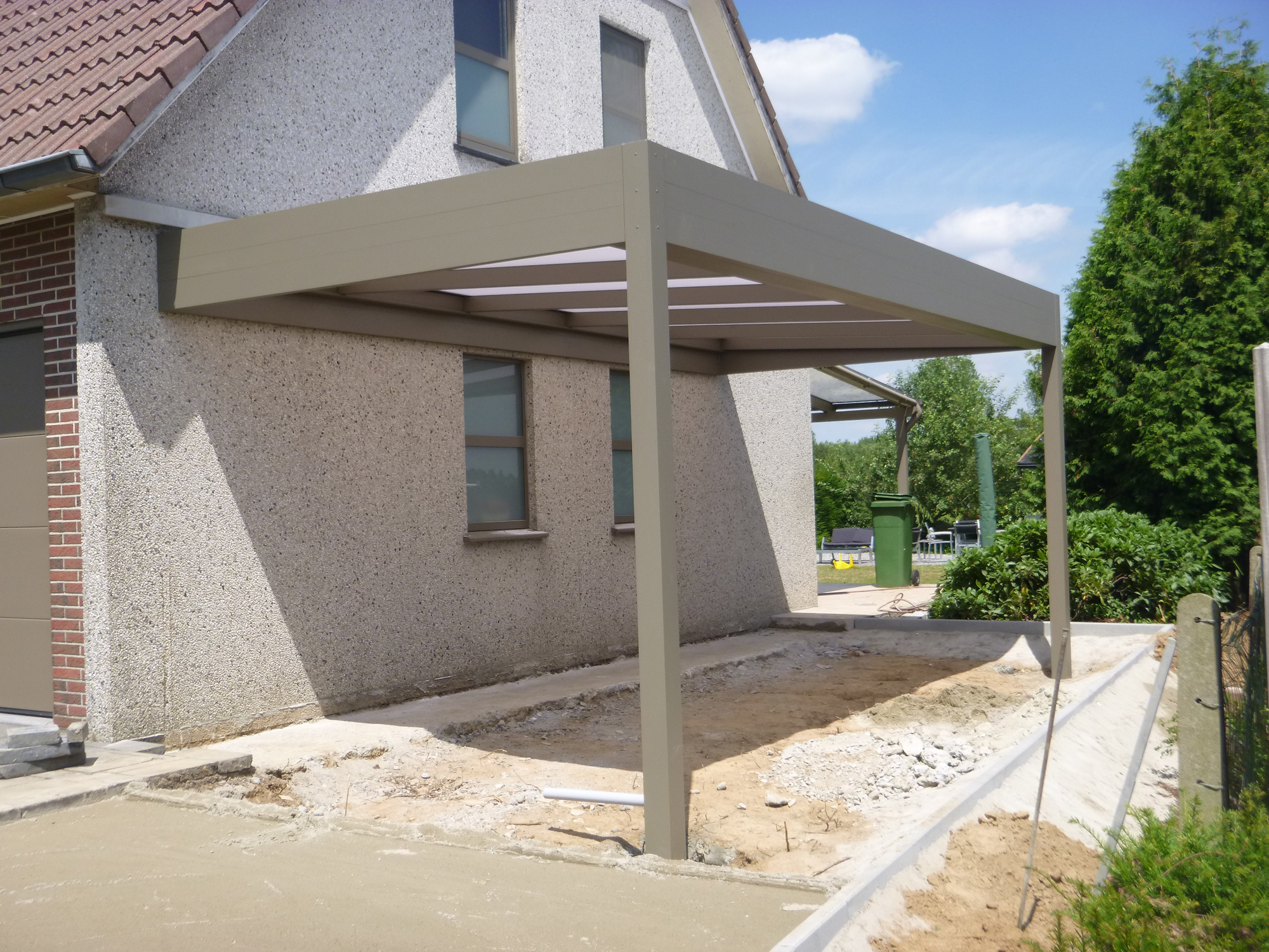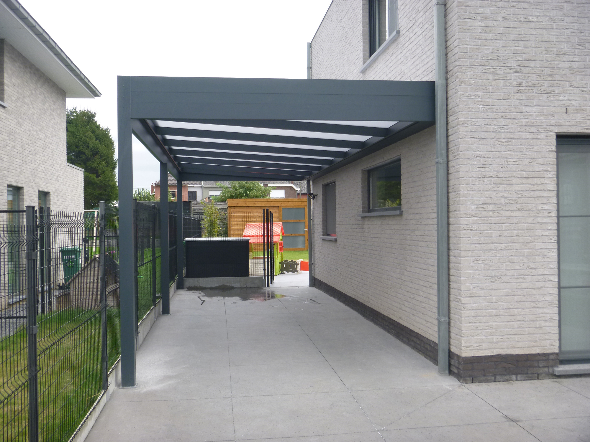 Esthetische meerwaarde: Met zijn strakke lijnen en eigentijdse uitstraling sluit de carport naadloos aan bij moderne architectuur, waardoor uw woonomgeving een extra dimensie krijgt.