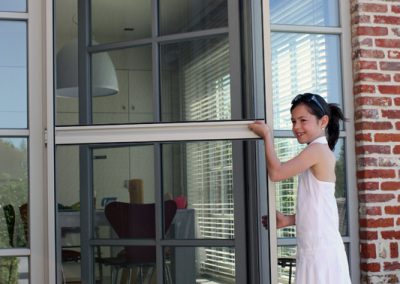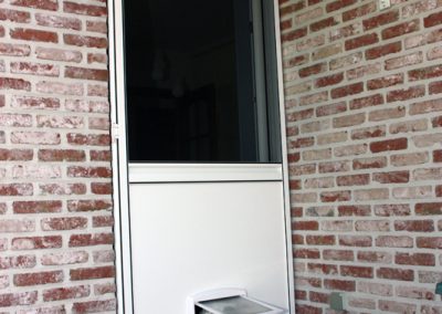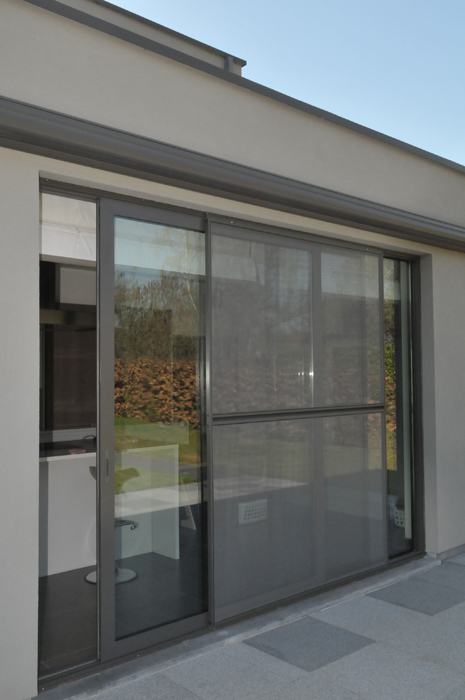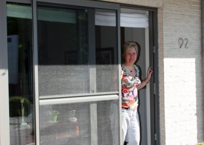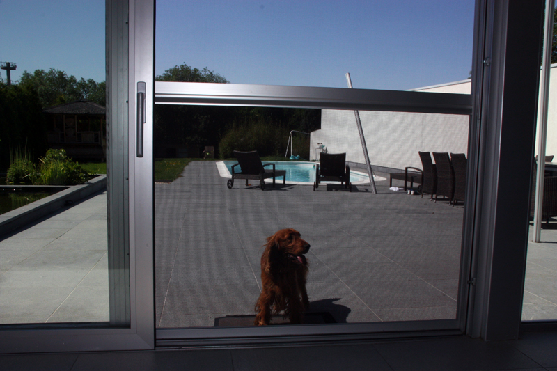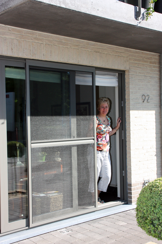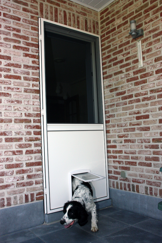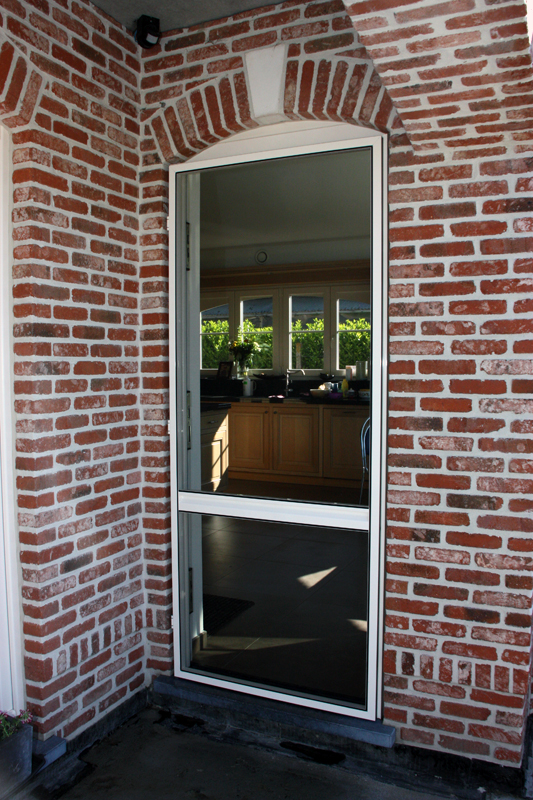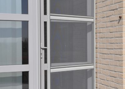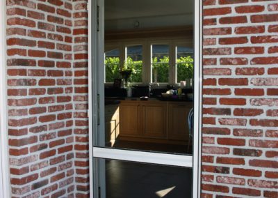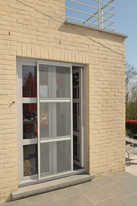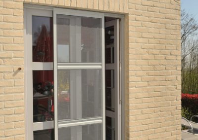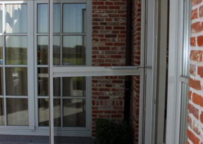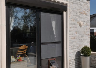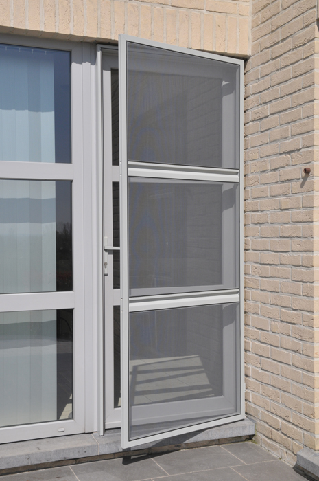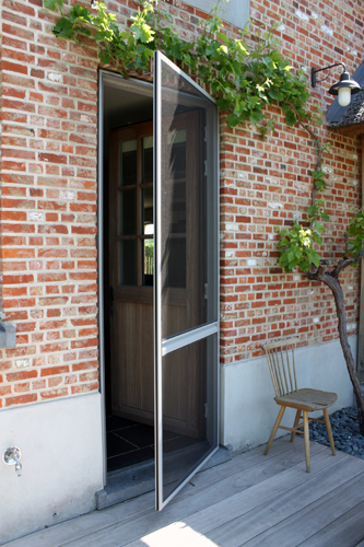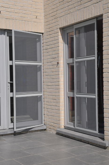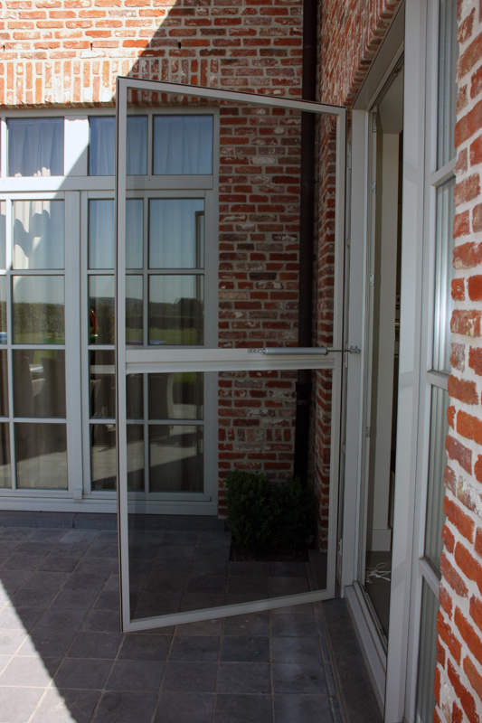 Waarom aanmodderen met vliegenvangers of spuitbussen? Met een vliegendeur weert u hardnekkige insecten en bent u beschermd tegen pollen. Reken bij ons op een deur die perfect past bij uw omgeving, want uw vliegendeur mag er allesbehalve uitspringen. Dankzij het sublieme Bellavista-gaas gaat uw vliegendeur helemaal op in uw voorgevel en verliest u geen straaltje zon! Op het raamkader vervaardigd uit hoogwaardige aluminiumprofielen van Reynaers Aluminium krijgt u tien jaar garantie. Elke vliegendeur is verstevigd met drie scharnieren. Zo kan de deur keer op keer vlot draaien. Efficiënte troef met de geïntegreerde magneetstrips. De vliegendeur kan eveneens uitgerust worden met een schopplaat, of als u liever wenst dat de deur automatisch sluit dan kunnen wij een pneumatische pomp plaatsen. Zo blijft uw vliegendeur nooit meer openstaan.Onze realisaties
