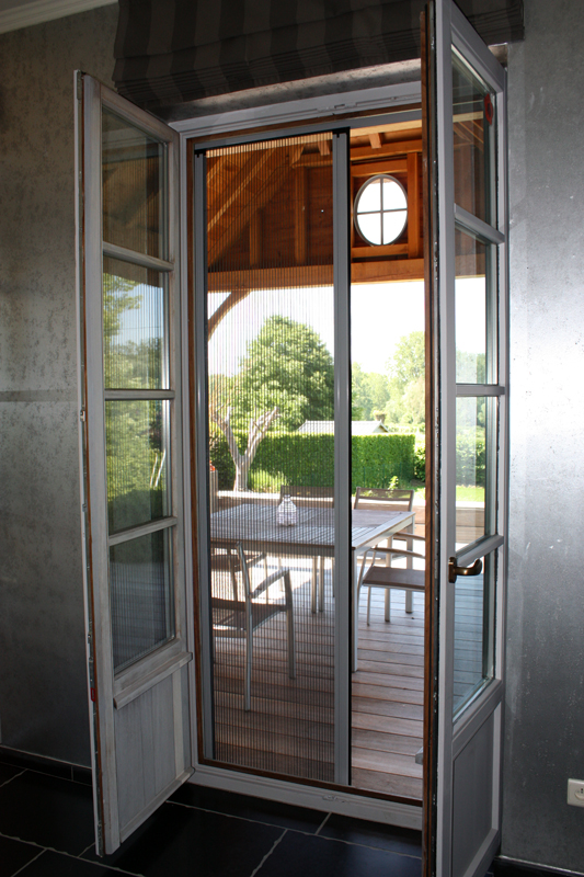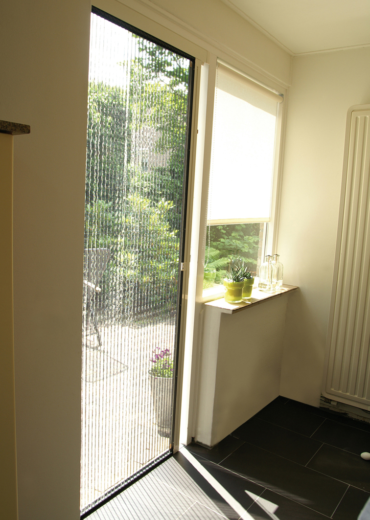 Uw woning verluchten zonder vervelende insecten en dit op een bijzonder stijlvolle manier? Dit kan met het paradepaardje van de insectwerende wereld. Plisséramen en deuren combineren Japanse finesse met Europese inventiviteit. U rolt het gaas niet op, u vouwt het op. Het opengevouwen gaas sluit de opening keurig af en blijft netjes op zijn plaats. Doordat er geen veer zit in het systeem geeft het gaas geen klik, terwijl u het met weinig kracht bedient. Dankzij de stabilisatiekoorden blijft het evenwijdig. Zelfs een kind kan de deur veilig openen of sluiten. De cassette neemt u er snel uit om het te reinigen of om hem op te bergen tijdens de wintermaanden.Weer hardnekkige insecten en bescherm uzelf tegen pollen